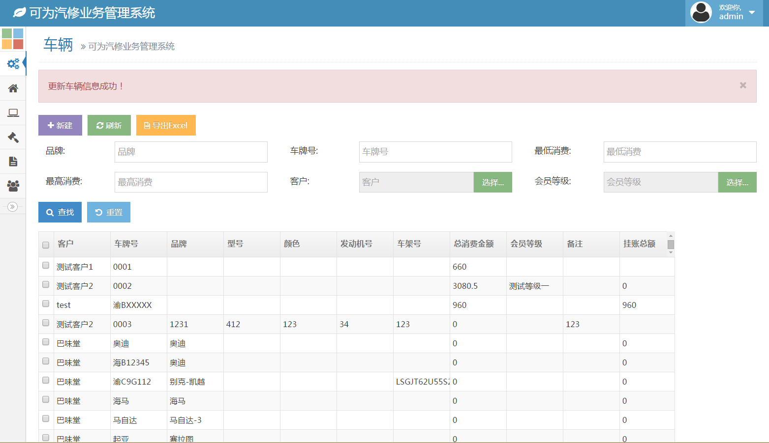 - 车辆与客户数据联合查询,可查询客户的所有车辆,也可查询某一品牌车辆的所有客户