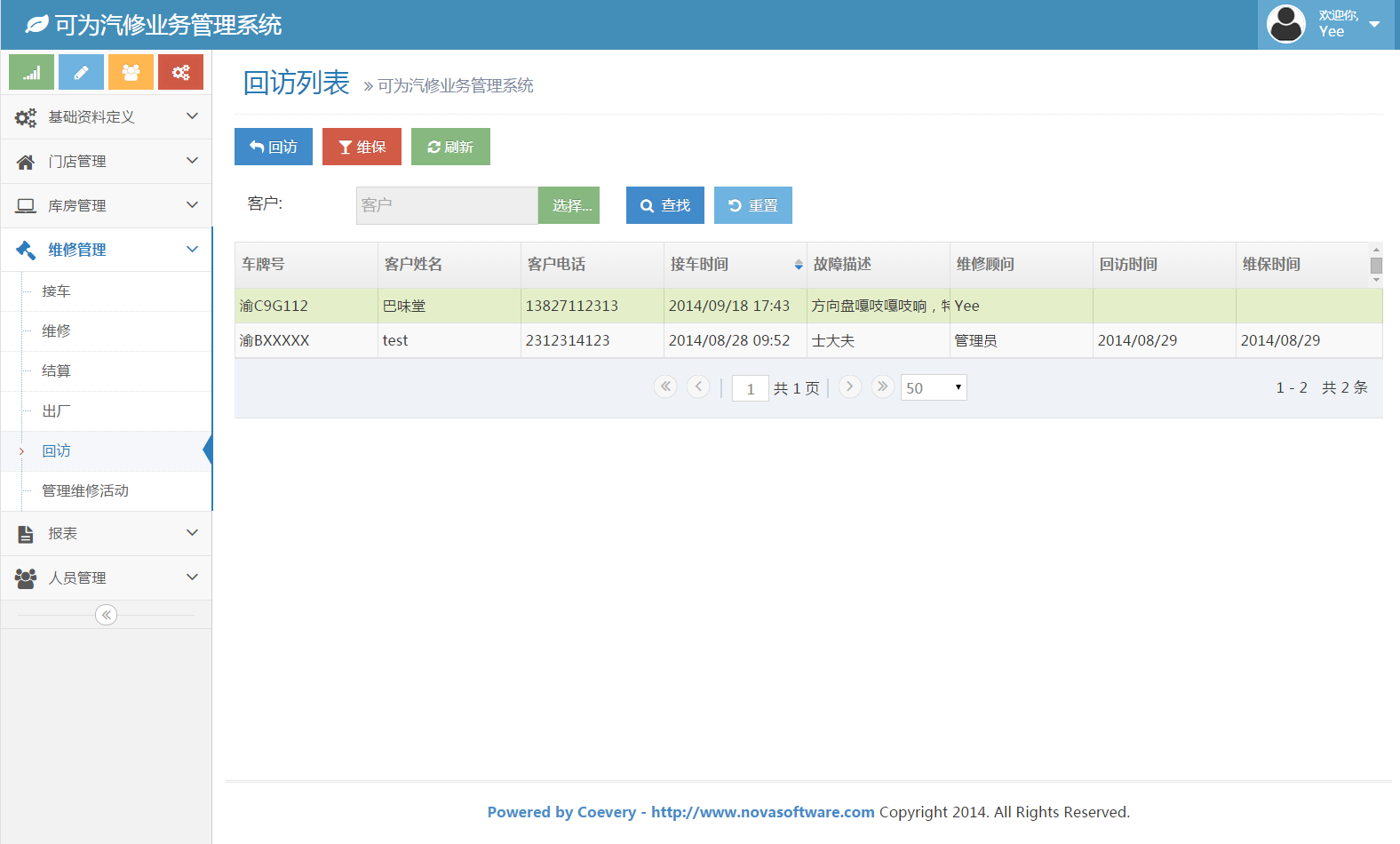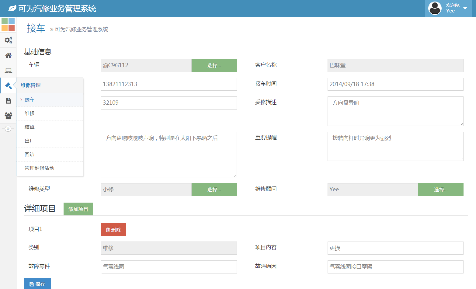 诺怀汽修管理系统