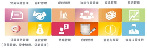 系统要求业务流程涵盖商业银行的贷款业务的各个方面,支持多种贷款业务,全面满足业务需求,规范信贷管理程序。同时系统包含了OA办公、财务管理、账务管理的模块功能,做到“一套软件在手,全面管理无忧”