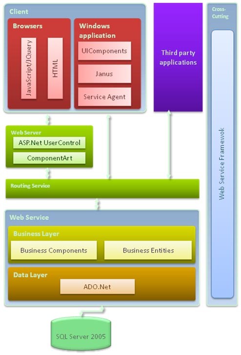 该项目的表示层利用.NET窗体控件实现,并且程序通过HTTP部署。它被分成多个基于函数的组件,以确保组件是易于管理的,这样也方便系统进一步增强和扩展。